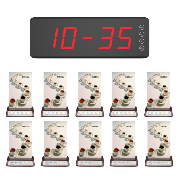 Wireless fluid system is widely used in the service area. It includes the buttons for guests to use and the signal receiver for waiters to use. When the guest is in need, he or she just presses the button near him or her, his or her desk number will be displayed with music or vibration.