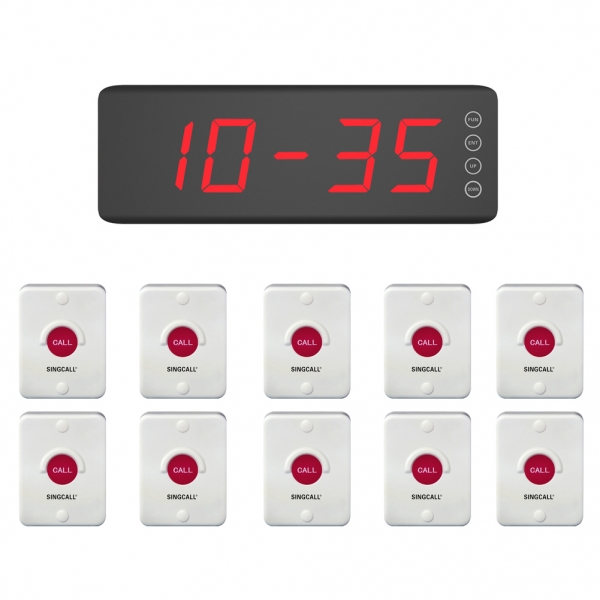 Wireless fluid system is widely used in the service area. It includes the buttons for guests to use and the signal receiver for waiters to use. When the guest is in need, he or she just presses the button near him or her, his or her desk number will be displayed with music or vibration.