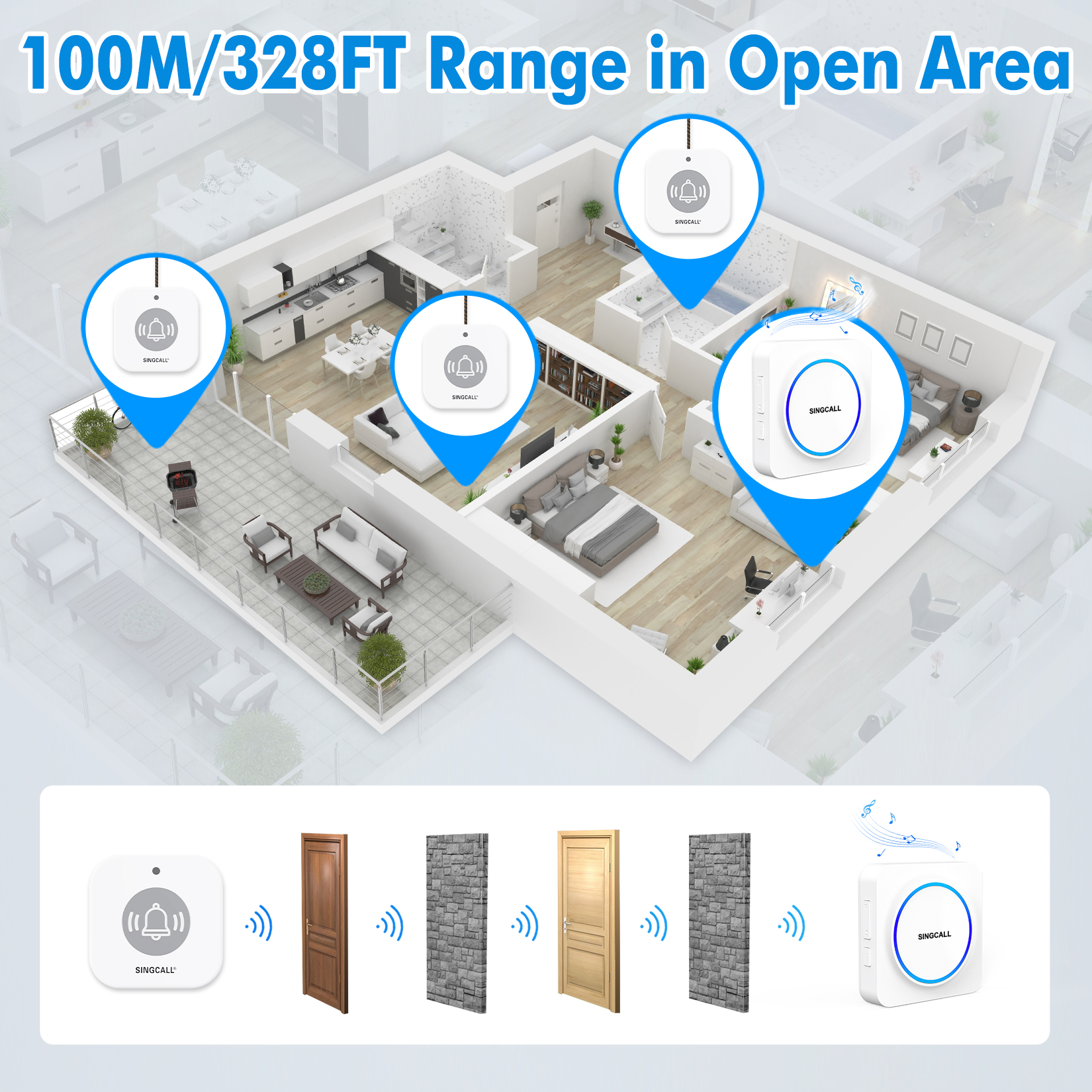 - Multi-Ringtones & Adjustable Volume: Portable receiver with 32 ringtones and adjustable volume from 0-100dB;Set different ringtones per call button;Mute mode helps avoid disturbed sleep;LED flashing with ringtones(hearing-impaired friendly)